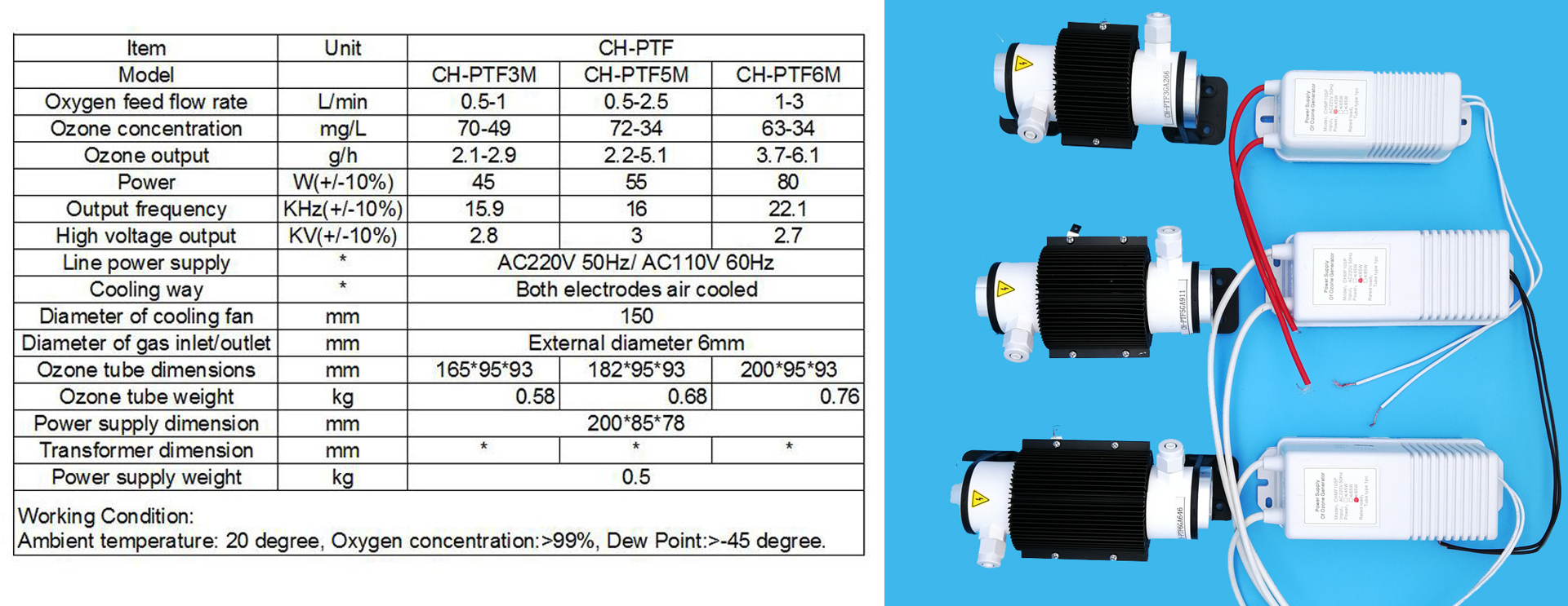 3. The working voltage is only 10% of the similar products, stable capactiy but with low ozone dissipated.